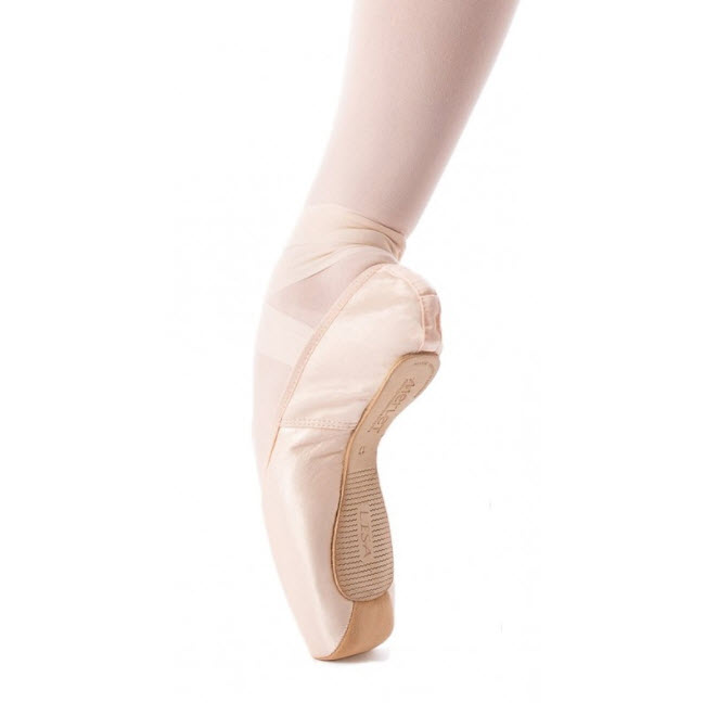 Zapatilla de punta en color Flesh con la parte superior de satén y puntera de alcantara para mayor confianza. Borde de algodón contorneado con cordón elástico para un ajuste perfecto. Interior de microfibra transpirable, que absorbe rápidamente el sudor. Forro de algodón suave