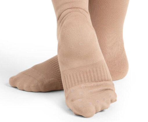 Tracción antideslizante en la punta del pie y otros puntos de contacto críticos para un máximo agarre del pie al suelo.