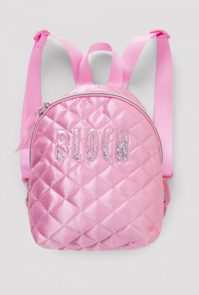 Con asa superior y correas ajustables para los hombros, confeccionada con satén acolchado de felpa, logotipo ‘BLOCH’ en la parte delantera con lentejuelas de estrellas, cierre de doble cremallera con cinta, bolsillos internos