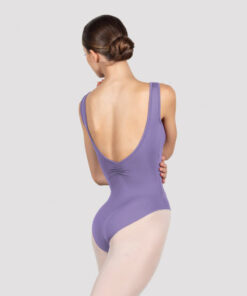 Maillot básico de Ballet con tirante ancho, frunce delantero, espalda baja también con frunce, corte que estiliza la línea de la pierna y 11 colores a elegir