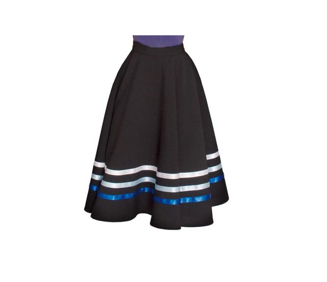 Falda reglamentaria para danza de carácter de la Royal Academy of Dancing (RAD), vuelo de capa, cintura ajustable con velcro, posibilidad de elegir tamaño de cintura y largo de la falda según talla y con 3 cintas de raso de diferentes combinaciones de color
