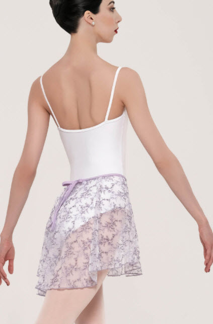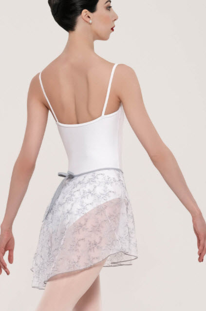 Falda de ballet asimétrica, corta por delante y media por detrás, cinturilla acabada con un pequeño lazo cosido en el centro de la espalda