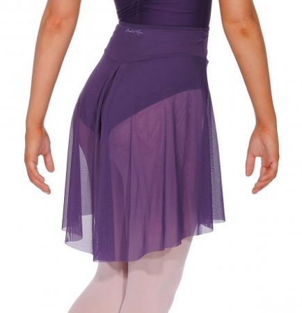 Falda confeccionada en malla elástica, diseñada por Isabelle Ciaravola, longitud media con pliegue único para realzar la curva en la parte trasera