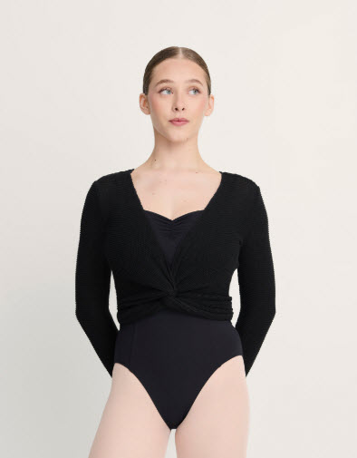 Este jersey cruzado de punto de manga larga es una prenda clásica imprescindible en el trabajo de warm up calentamiento dentro del ballet y otras disciplinas de danza. Su diseño envolvente permite ajustarlo al cuerpo de forma segura, protegiendo la musculatura dorsal y lumbar durante los primeros ejercicios en barra. El cruce frontal facilita una adaptación precisa al contorno del torso, manteniendo el calor corporal sin generar volumen excesivo ni interferir en la línea estética de la bailarina.