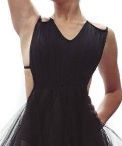 Túnica para danza con maillot de doble tirante, espalda al aire con tiras cruzadas y falda con capas de tul en picos