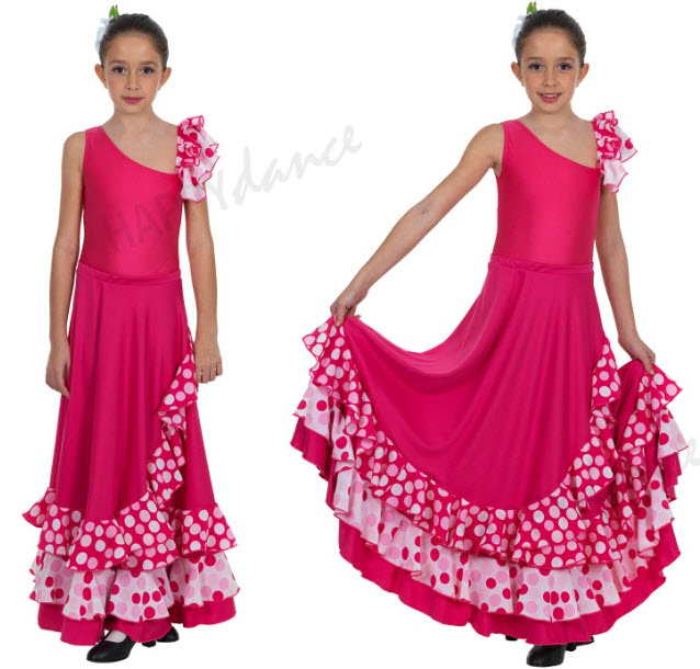 Falda baile flamenco de media capa, trincha con goma de 2,5 cm y 3 volantes de diferentes tamaños, primer volante sube hacia la cadera