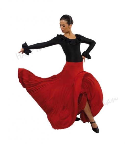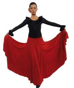 Falda de flamenco de nesgas con godets, entallada a media cadera, vuelo de capa y media, versión monocolor