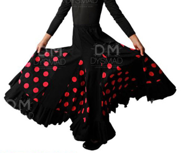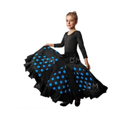 Falda flamenco infantil con cintura elástica, quillas con estampado de lunares y volante en la parte de abajo que puedes usar para tus festivales, actuaciones…